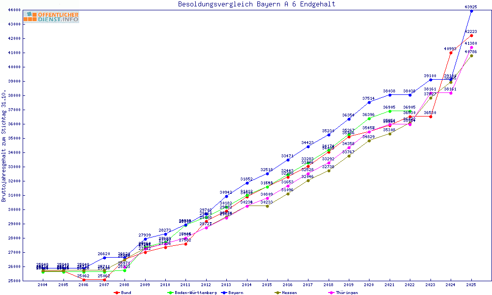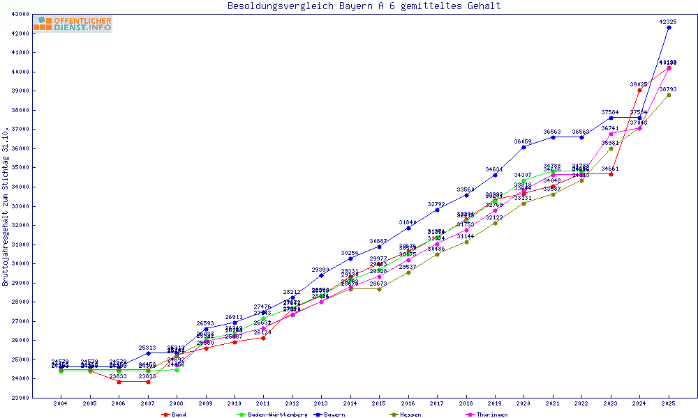 | Besoldungsvergleich A 6 im Jahr 2025 | gemitteltes Gehalt | ||||||
