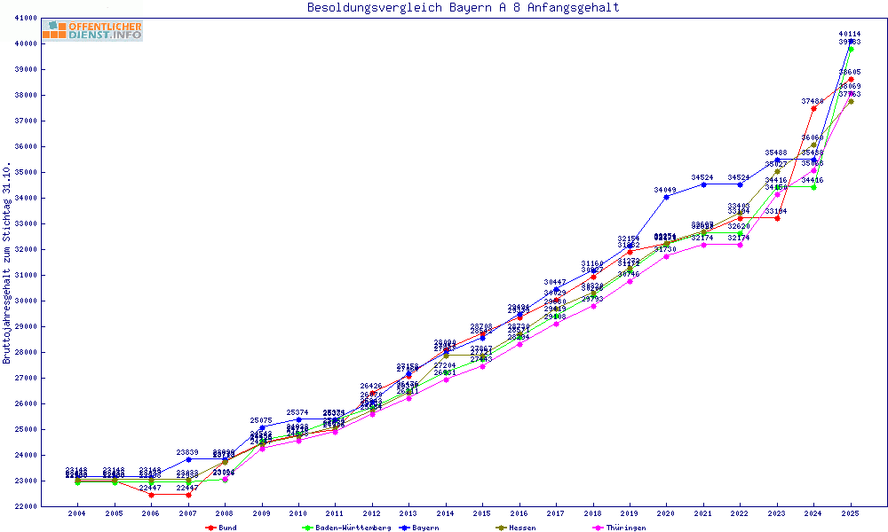 | Besoldungsvergleich A 8 im Jahr 2025 | Anfangsgehalt | ||||||