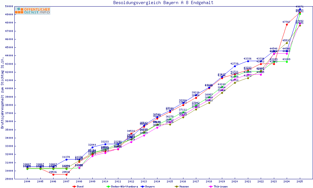 | Bayern | 49.671 € | +1637 € | +3.4% | 24 Jahre | ||||