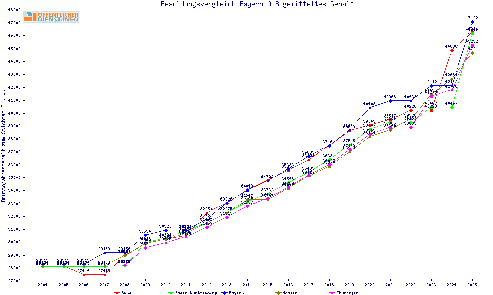 | Besoldungsvergleich A 8 im Jahr 2025 | gemitteltes Gehalt | ||||||