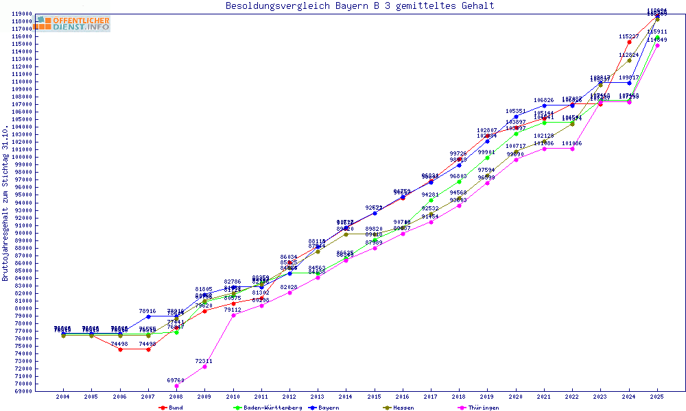 | Besoldungsvergleich B 3 im Jahr 2025 | gemitteltes Gehalt | ||||||