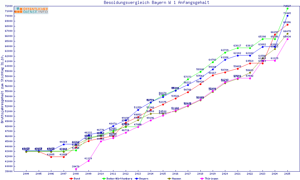 | Besoldungsvergleich W 1 im Jahr 2025 | Anfangsgehalt | ||||||