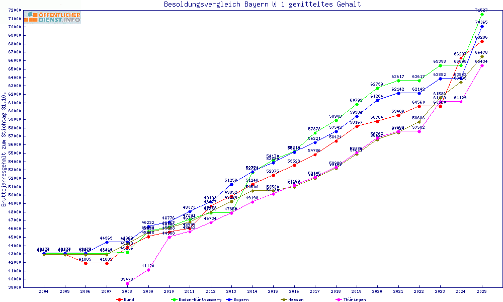 | Besoldungsvergleich W 1 im Jahr 2025 | gemitteltes Gehalt | ||||||