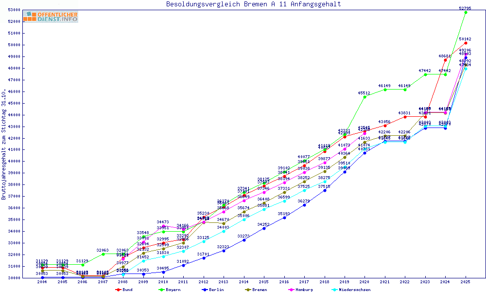 | Jahresgehalt brutto | im Vergleich mit Bremen |