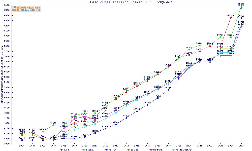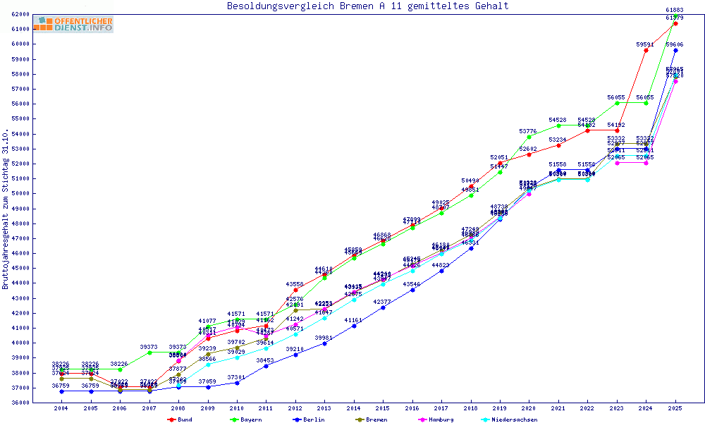 | Besoldungsvergleich A 11 im Jahr 2025 | gemitteltes Gehalt | ||||||