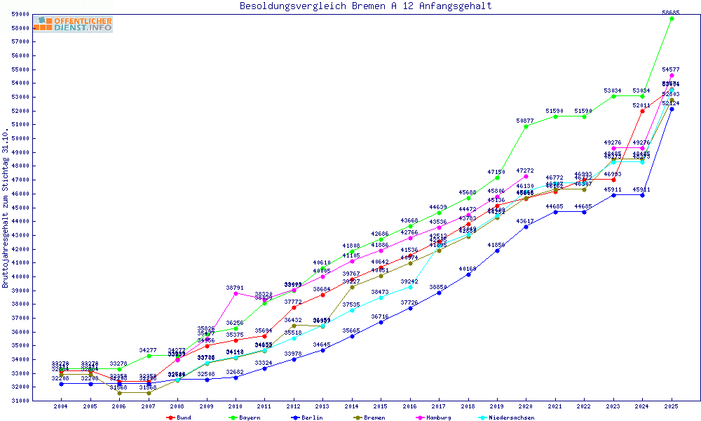 | Jahresgehalt brutto | im Vergleich mit Bremen |