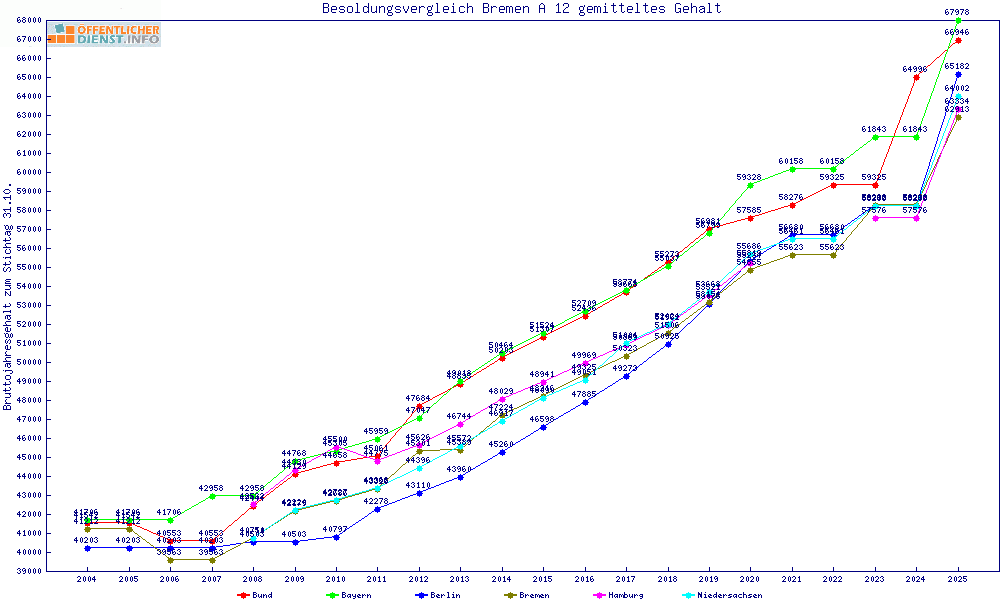 | Bremen | 67.251 € | -2025 € | -2.9% | 26 Jahre | ||||