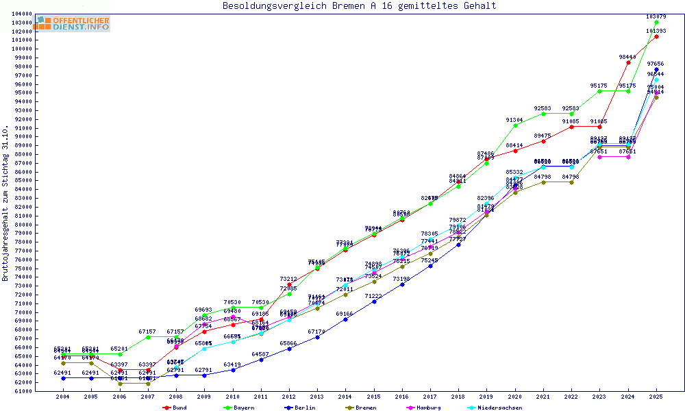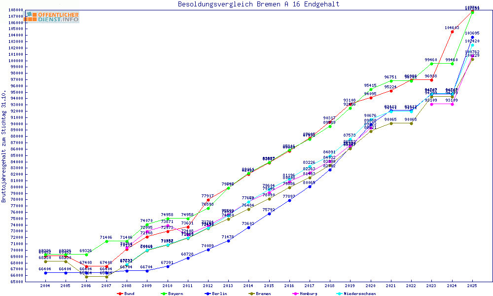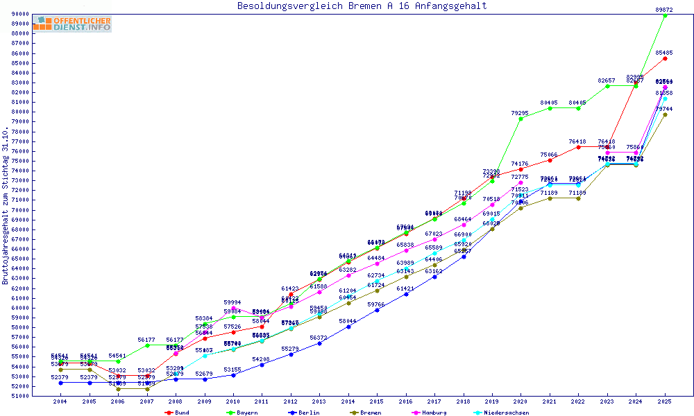| Besoldungsvergleich A 16 im Jahr 2025 | Anfangsgehalt | ||||||
