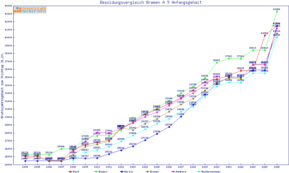 | Besoldungsvergleich A 9 im Jahr 2025 | Anfangsgehalt | ||||||