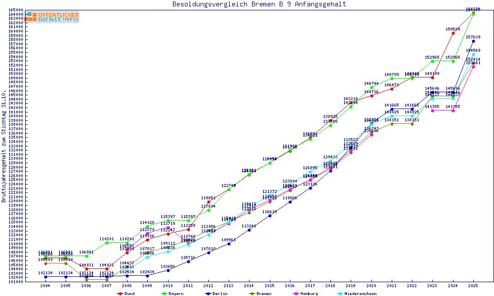 | Besoldungsvergleich B 9 im Jahr 2025 | Anfangsgehalt | ||||||