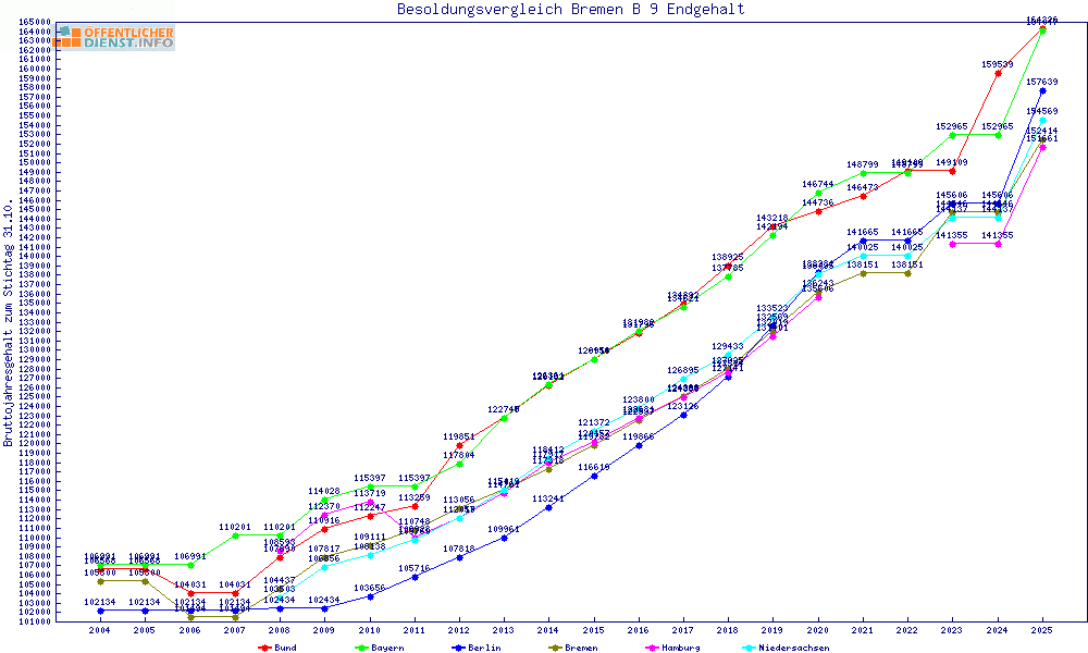 | Besoldungsvergleich B 9 im Jahr 2025 | gemitteltes Gehalt | ||||||