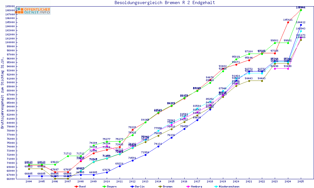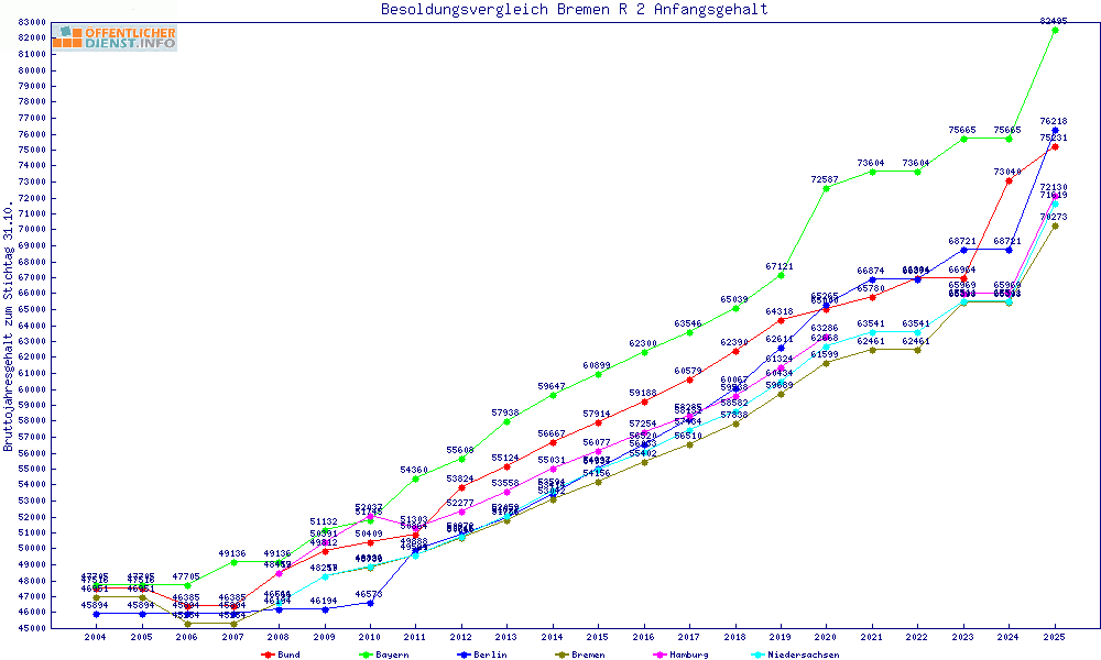 | Besoldungsvergleich R 2 im Jahr 2025 | Anfangsgehalt | ||||||