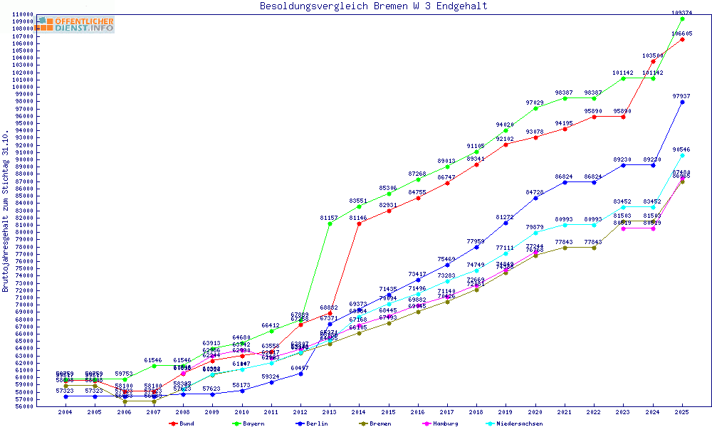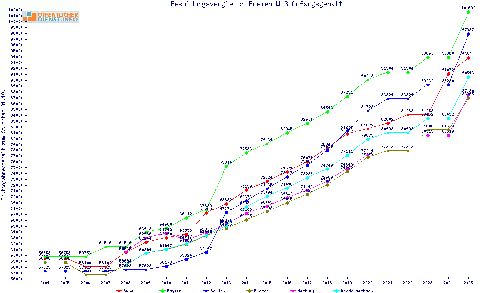 | Besoldungsvergleich W 3 im Jahr 2025 | Anfangsgehalt | ||||||