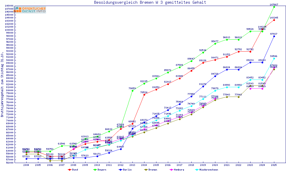 | Besoldungsvergleich W 3 im Jahr 2025 | gemitteltes Gehalt | ||||||