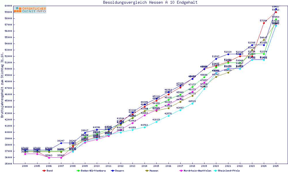 | Besoldungsvergleich A 10 im Jahr 2025 | Anfangsgehalt | ||||||