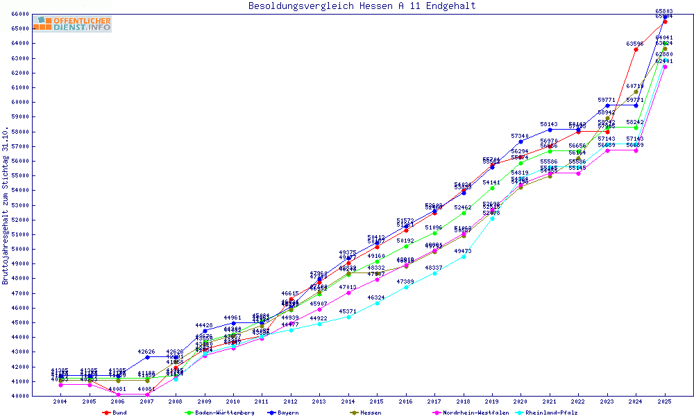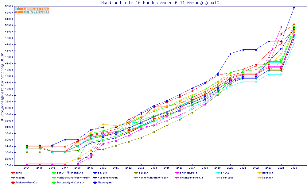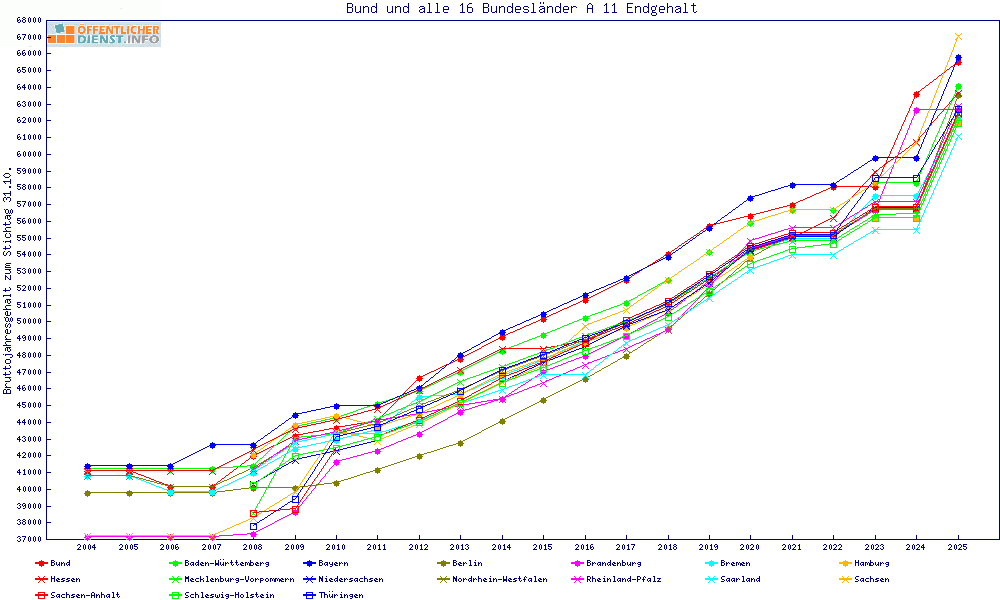 | Besoldungsvergleich A 11 im Jahr 2025 | Anfangsgehalt | ||||||