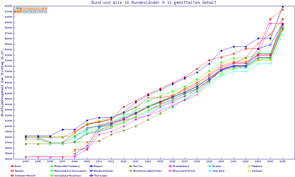 | Besoldungsvergleich A 11 im Jahr 2025 | gemitteltes Gehalt | ||||||