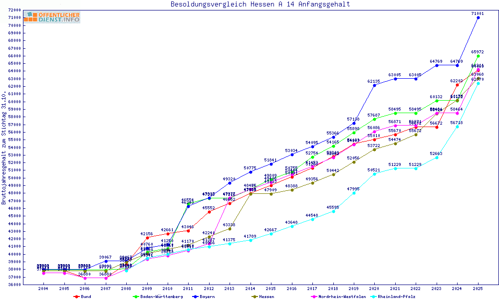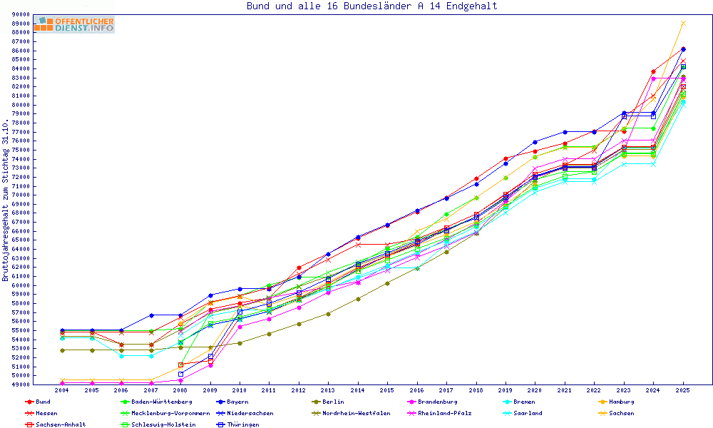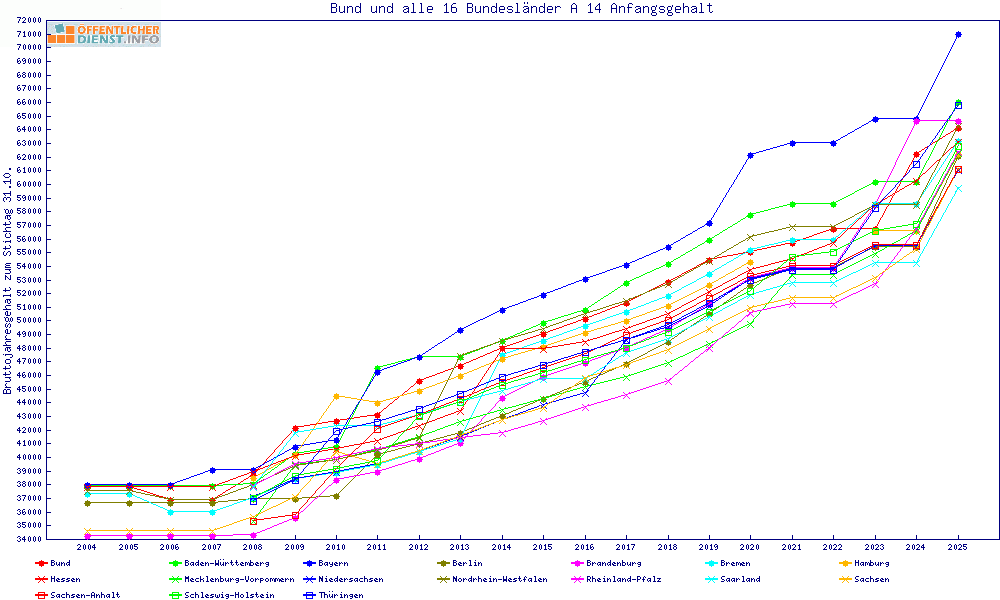 | Besoldungsvergleich A 14 im Jahr 2025 | Anfangsgehalt | ||||||