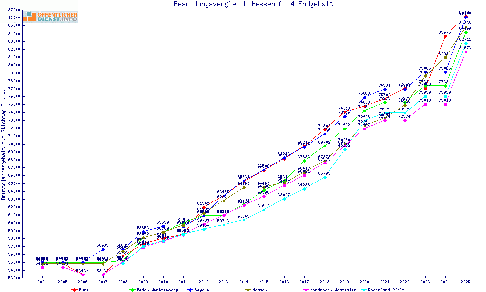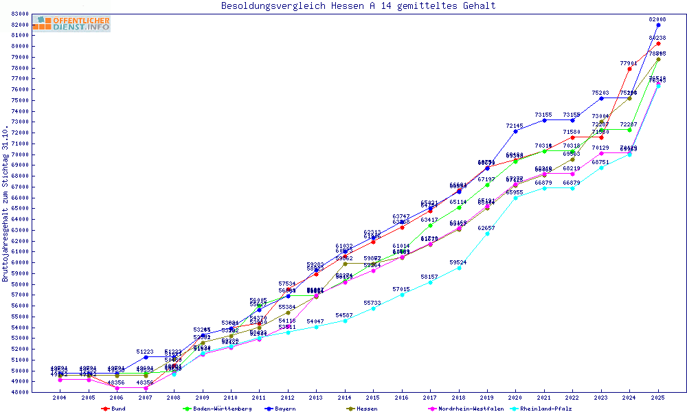 | Besoldungsvergleich A 14 im Jahr 2025 | gemitteltes Gehalt | ||||||