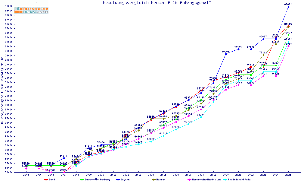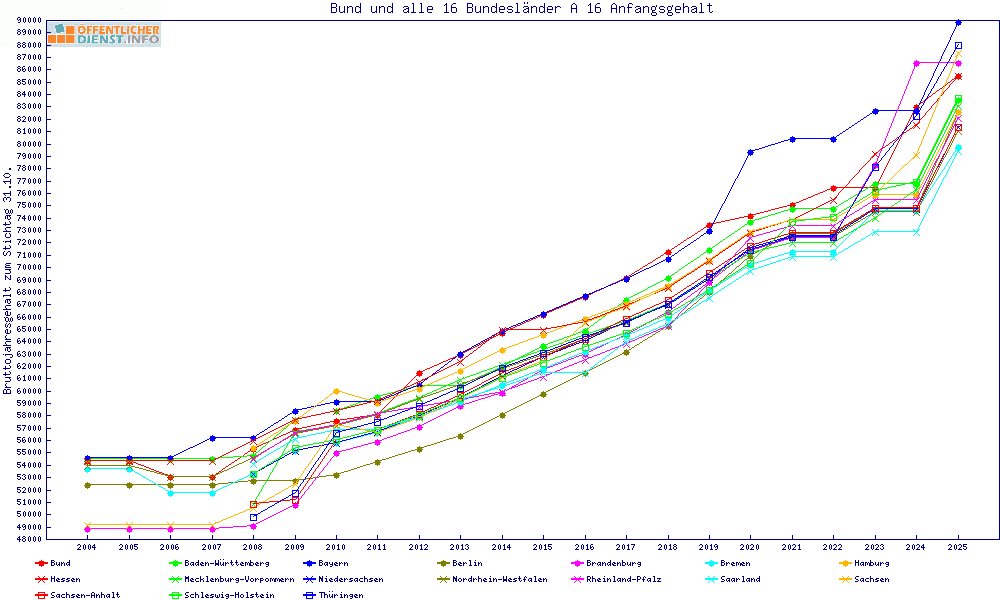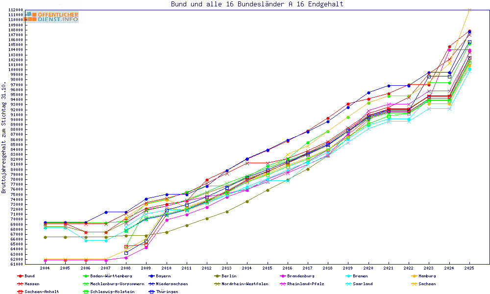 | Besoldungsvergleich A 16 im Jahr 2025 | Anfangsgehalt | ||||||