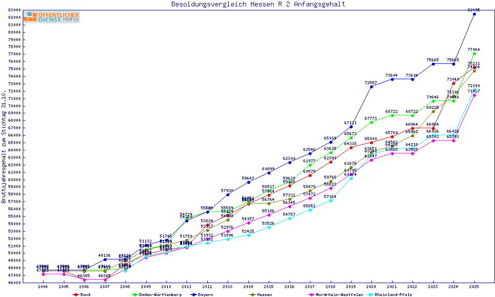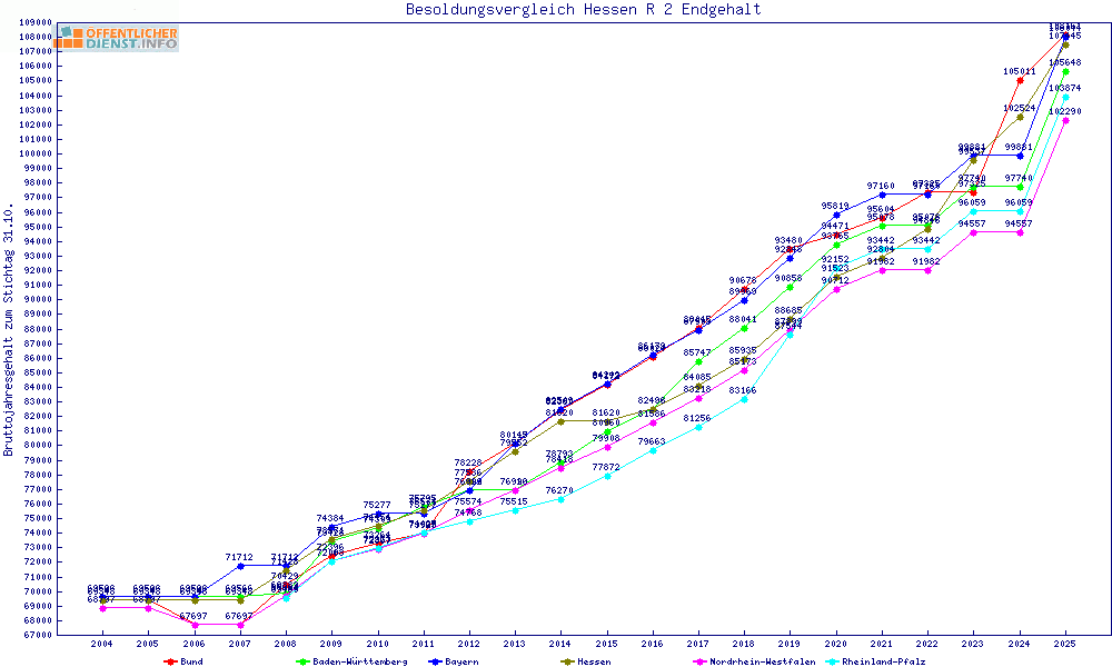 | Besoldungsvergleich R 2 im Jahr 2025 | Anfangsgehalt | ||||||