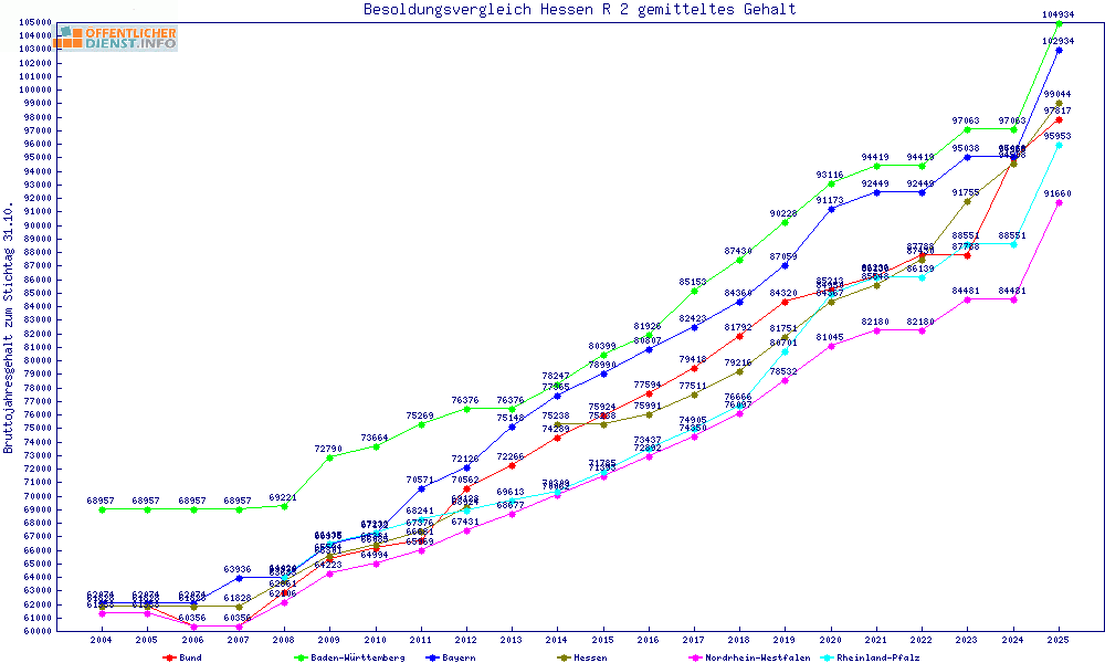 | Besoldungsvergleich R 2 im Jahr 2025 | gemitteltes Gehalt | ||||||