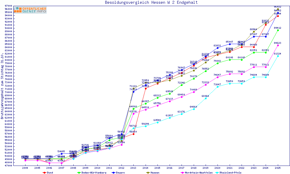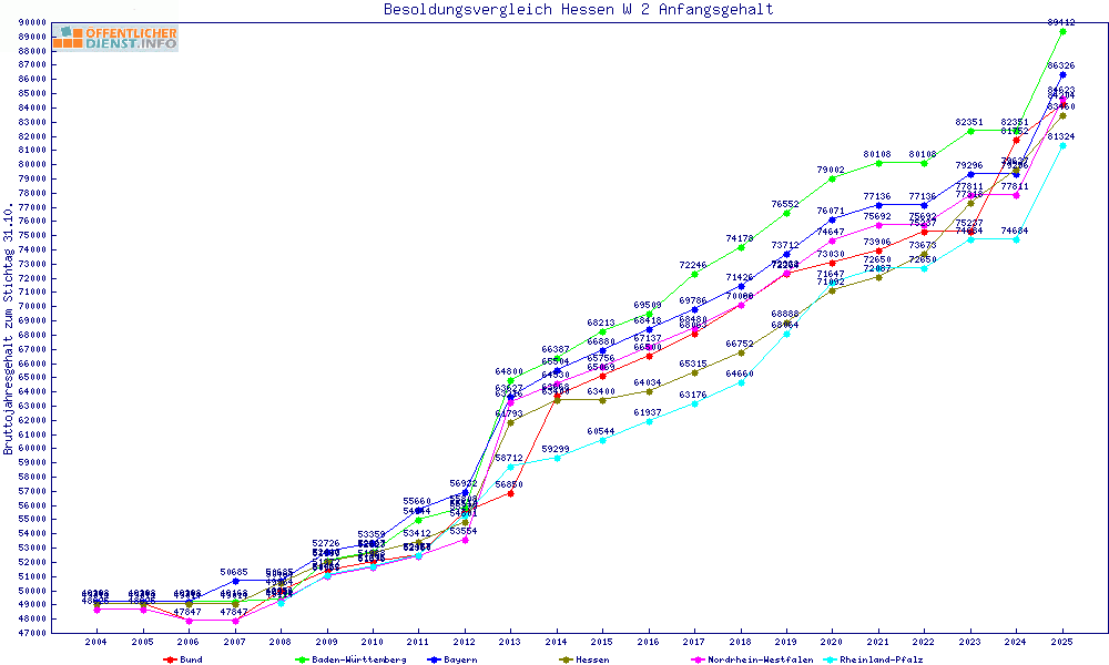 | Besoldungsvergleich W 2 im Jahr 2025 | Anfangsgehalt | ||||||