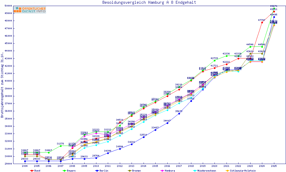 | Besoldungsvergleich A 8 im Jahr 2025 | Endgehalt | |||||||