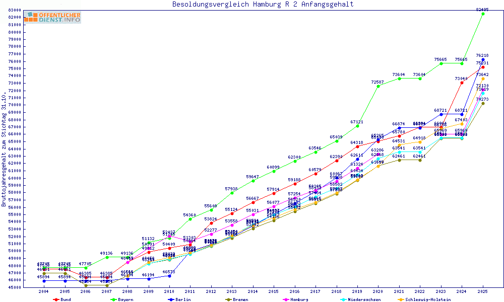 | Besoldungsvergleich R 2 im Jahr 2025 | Anfangsgehalt | ||||||