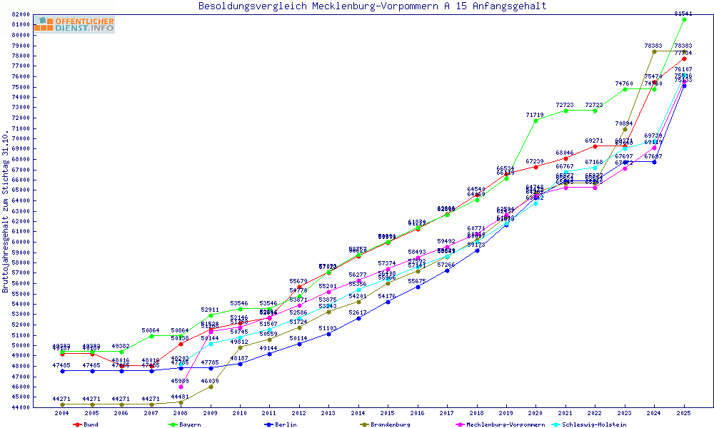 | Besoldungsvergleich A 15 im Jahr 2025 | Anfangsgehalt | ||||||