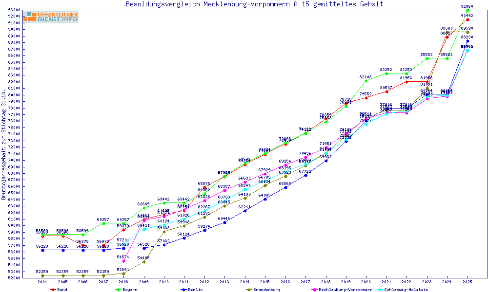 | Besoldungsvergleich A 15 im Jahr 2025 | gemitteltes Gehalt | ||||||