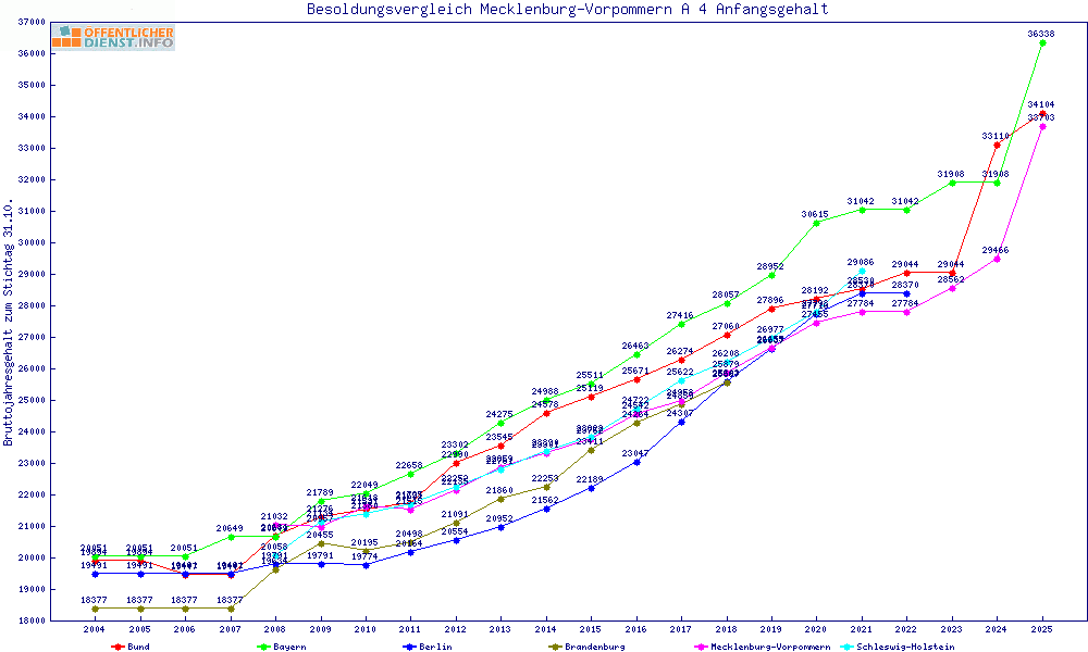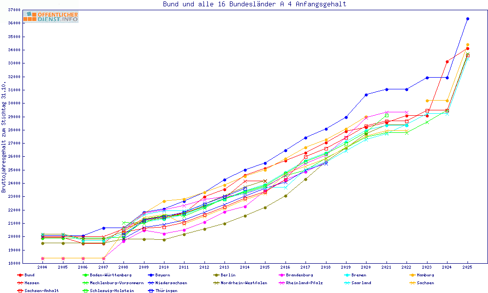 | Besoldungsvergleich A 4 im Jahr 2025 | Anfangsgehalt | ||||||