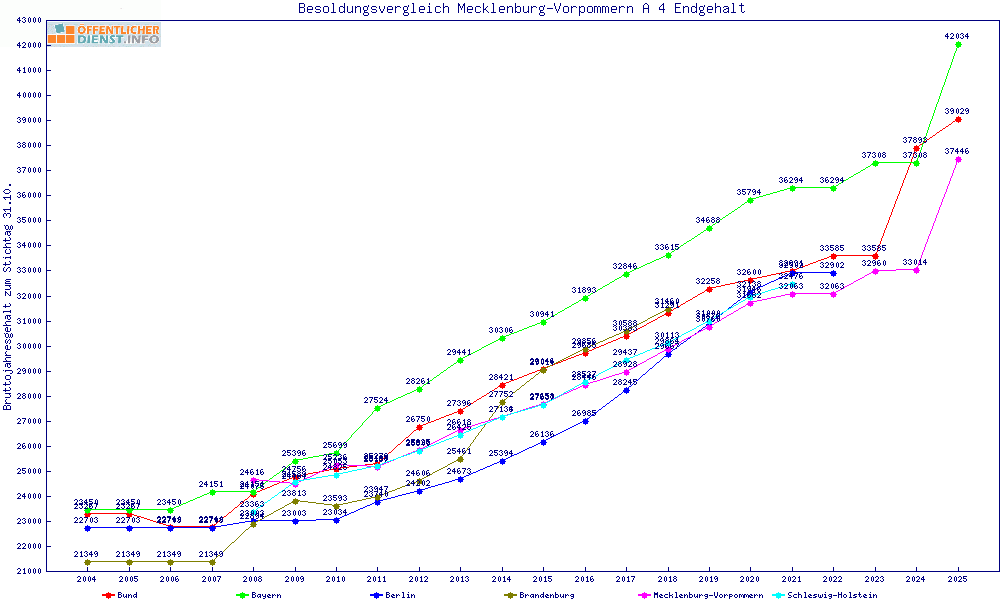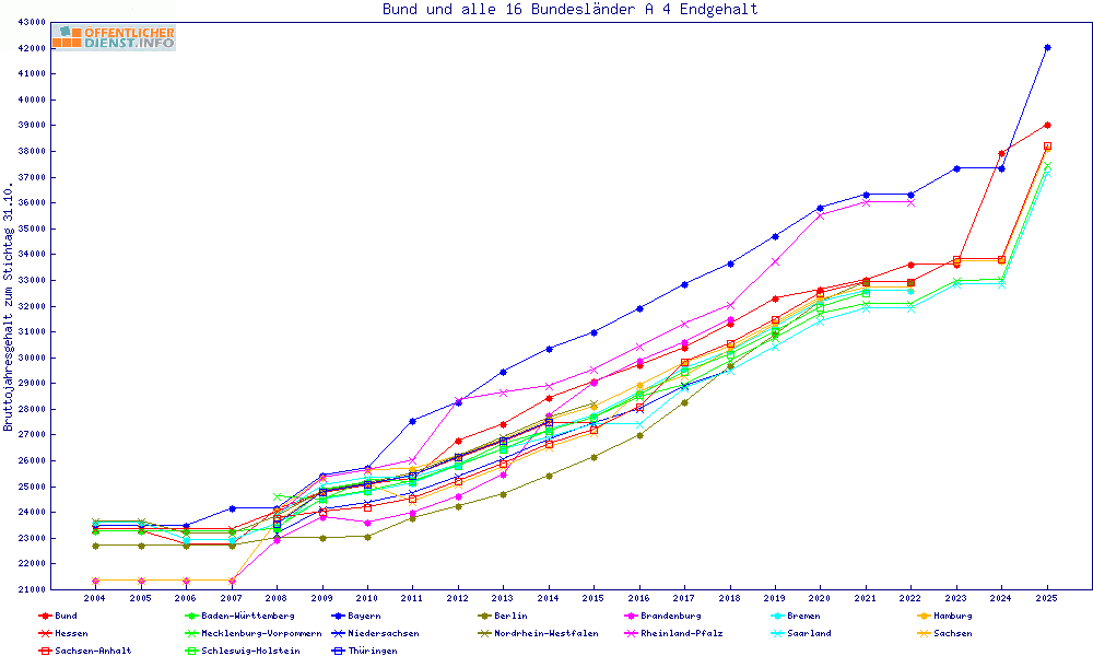 | Besoldungsvergleich A 4 im Jahr 2025 | Endgehalt | |||||||