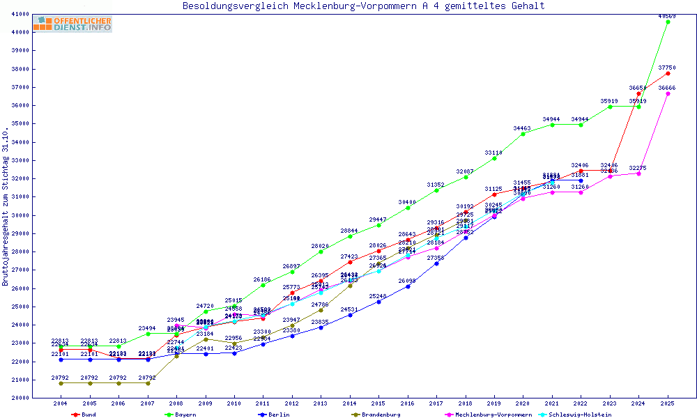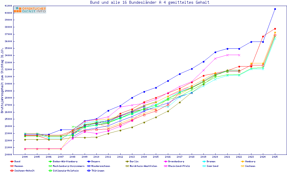 | Besoldungsvergleich A 4 im Jahr 2025 | gemitteltes Gehalt | ||||||