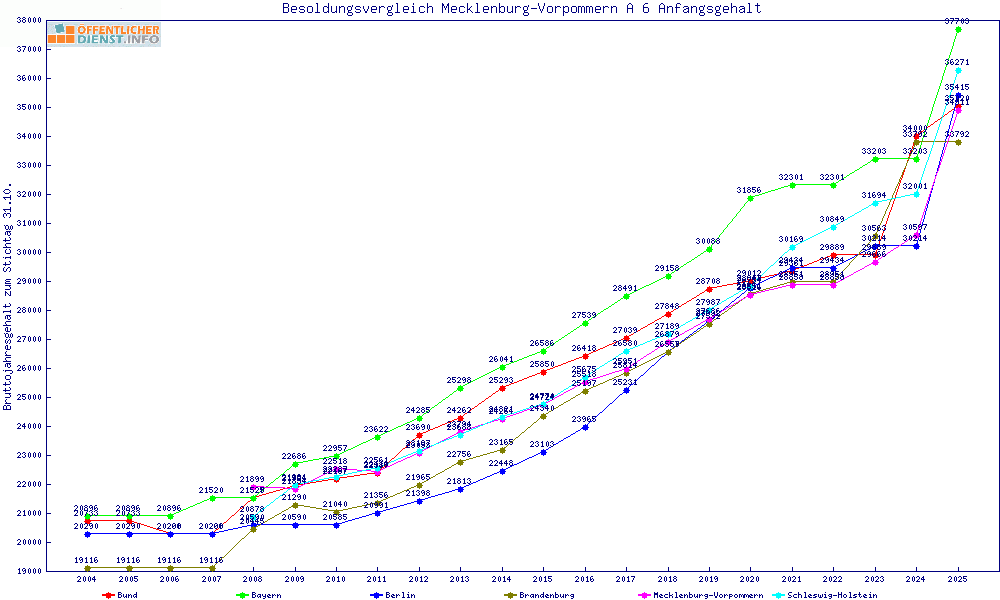 | Bayern | 43.926 € | +3176 € | +7.8% | +2122 € | +5.1% | 20 Jahre | ||