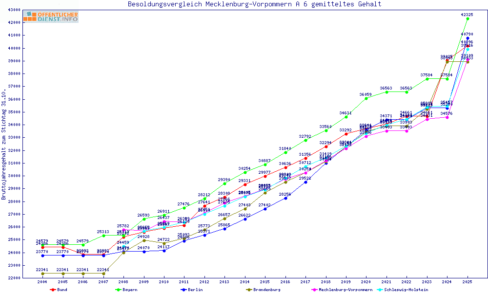 | Besoldungsvergleich A 6 im Jahr 2025 | gemitteltes Gehalt | ||||||