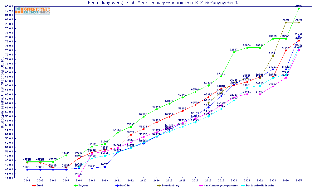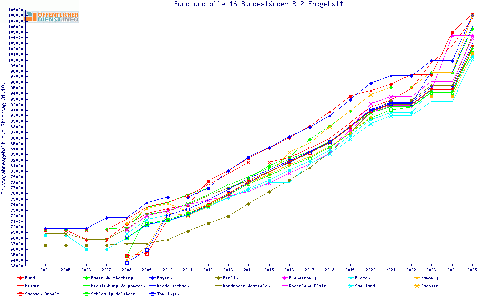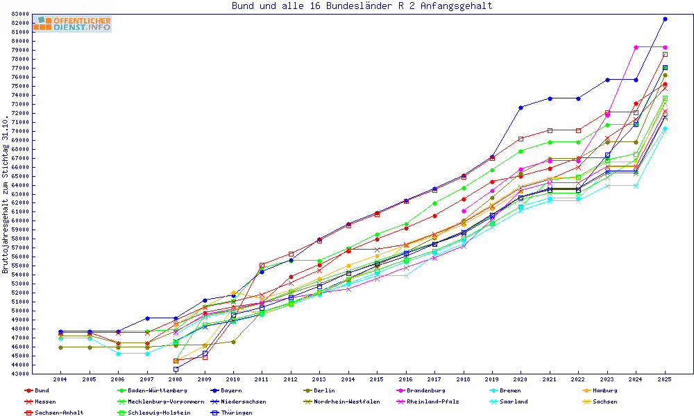| Besoldungsvergleich R 2 im Jahr 2025 | Anfangsgehalt | ||||||