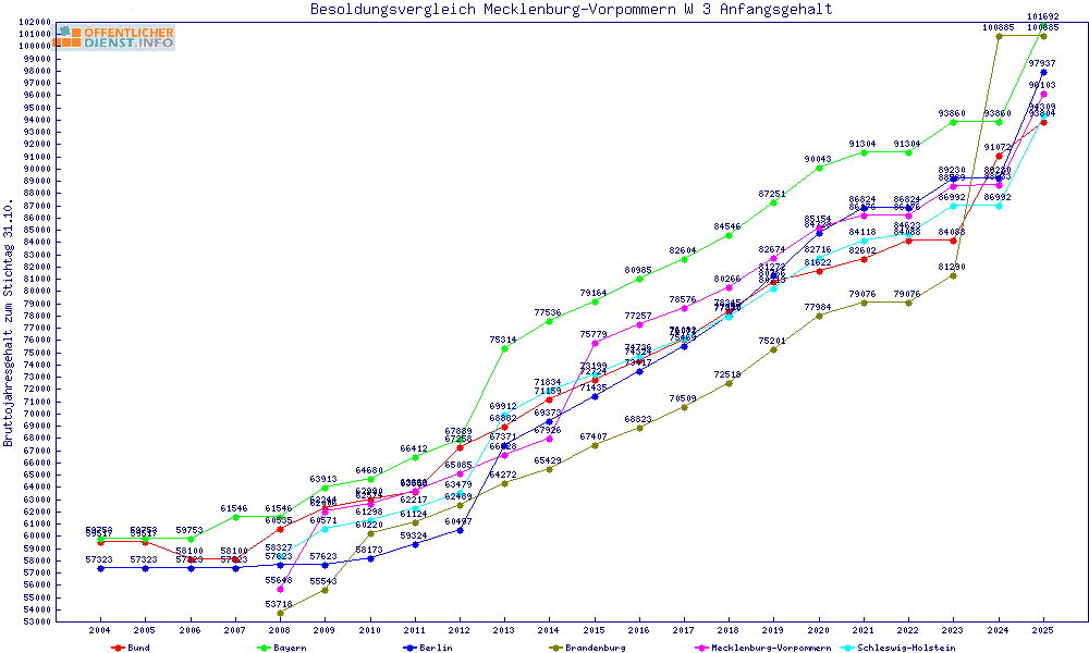 | Besoldungsvergleich W 3 im Jahr 2025 | Anfangsgehalt | ||||||