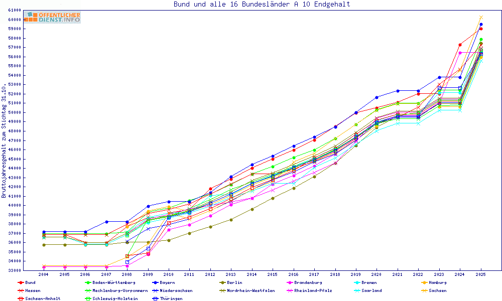 | Besoldungsvergleich A 10 im Jahr 2025 | Endgehalt | |||||||