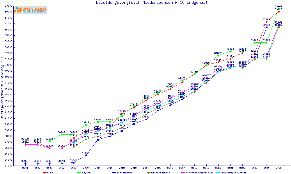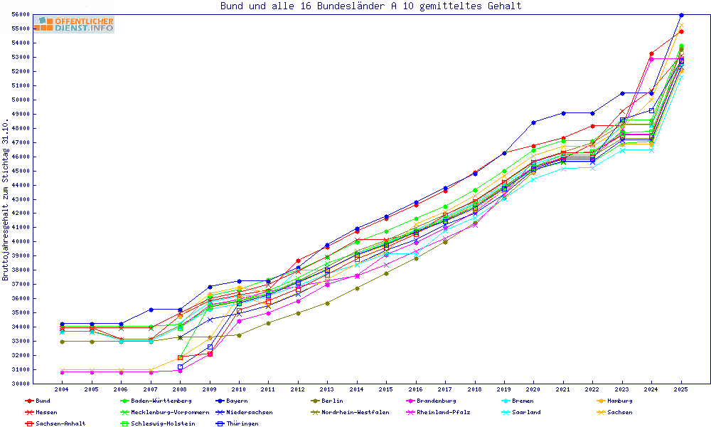 | Besoldungsvergleich A 10 im Jahr 2025 | gemitteltes Gehalt | ||||||