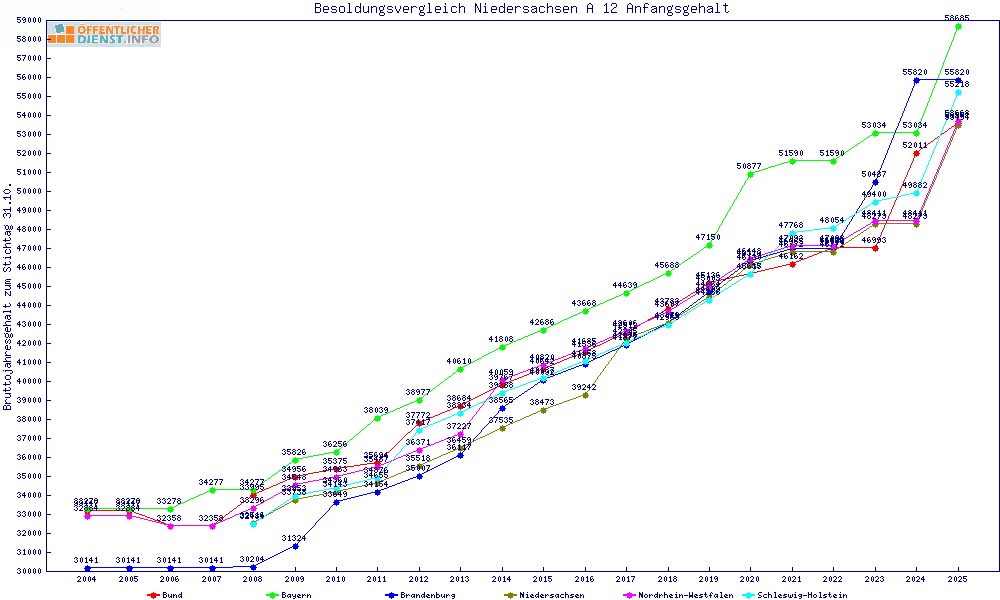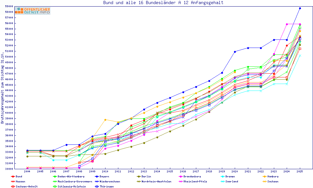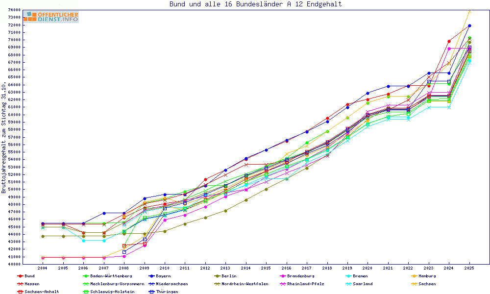 | Besoldungsvergleich A 12 im Jahr 2025 | Anfangsgehalt | ||||||