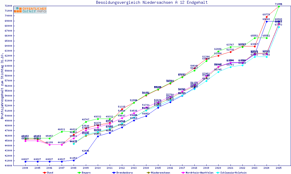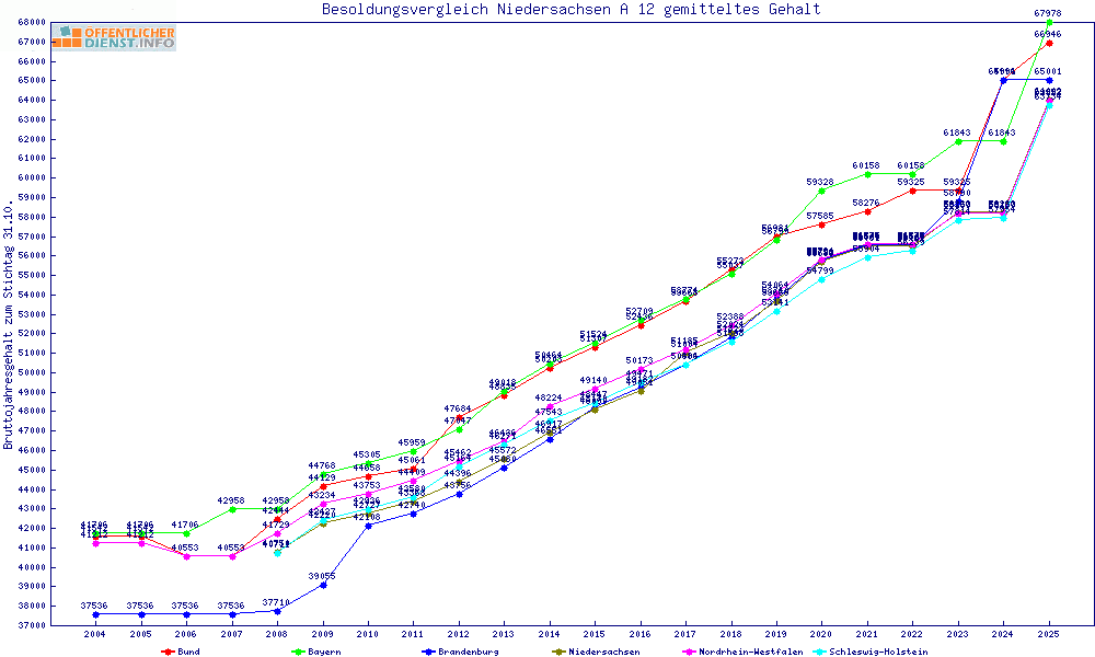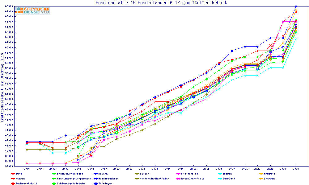 | Besoldungsvergleich A 12 im Jahr 2025 | gemitteltes Gehalt | ||||||