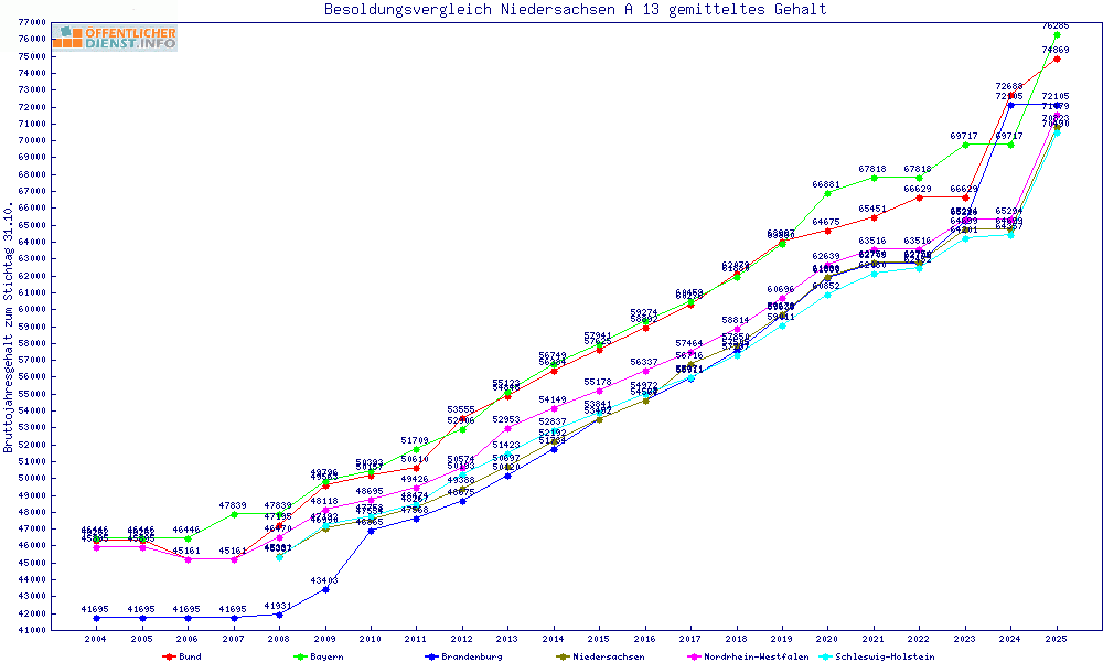 | Besoldungsvergleich A 13 im Jahr 2025 | gemitteltes Gehalt | ||||||