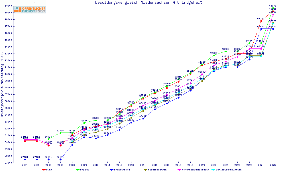 | Besoldungsvergleich A 8 im Jahr 2025 | Endgehalt | |||||||