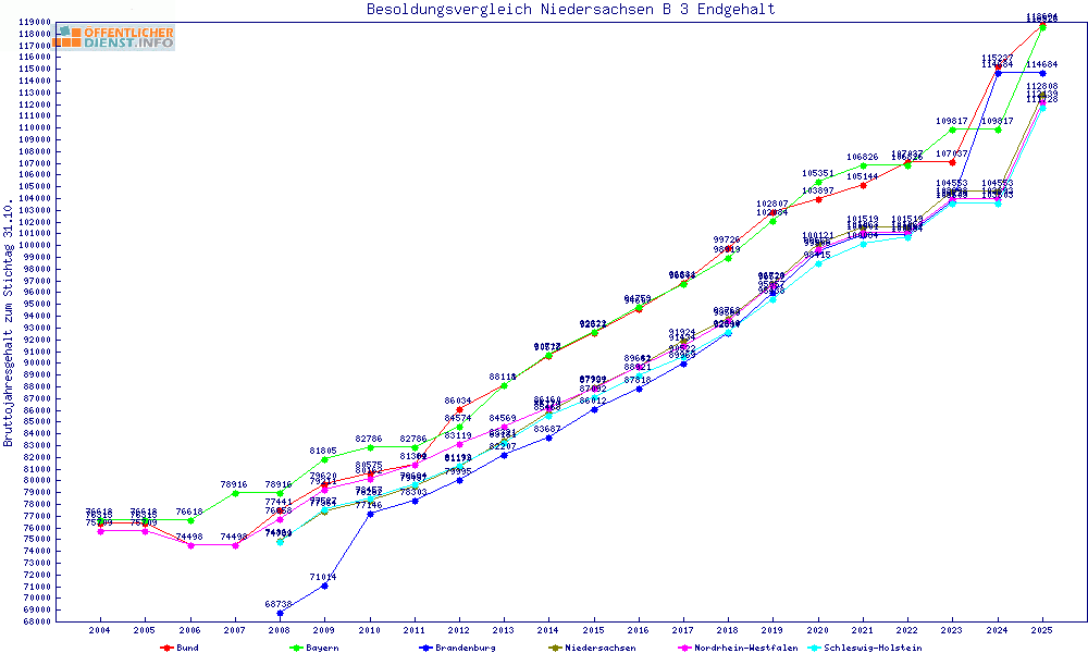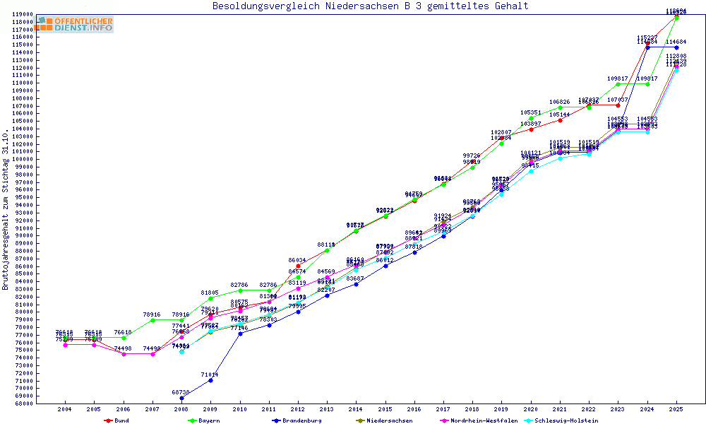 | Besoldungsvergleich B 3 im Jahr 2025 | gemitteltes Gehalt | ||||||