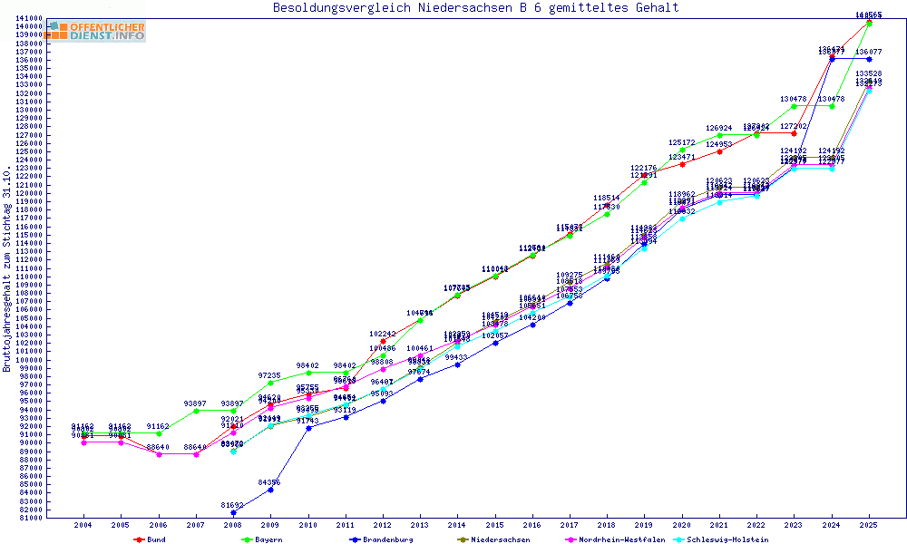 | Besoldungsvergleich B 6 im Jahr 2025 | gemitteltes Gehalt | ||||||