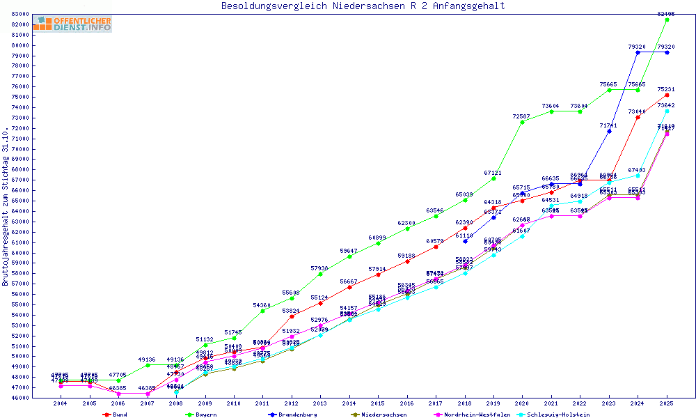 | Besoldungsvergleich R 2 im Jahr 2025 | Anfangsgehalt | ||||||