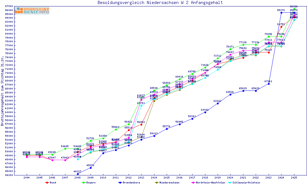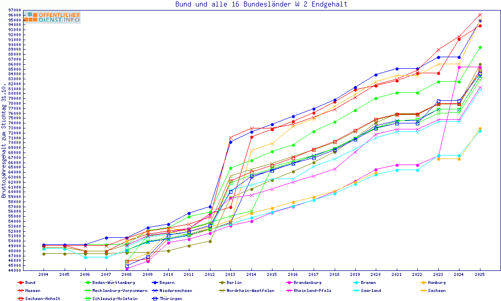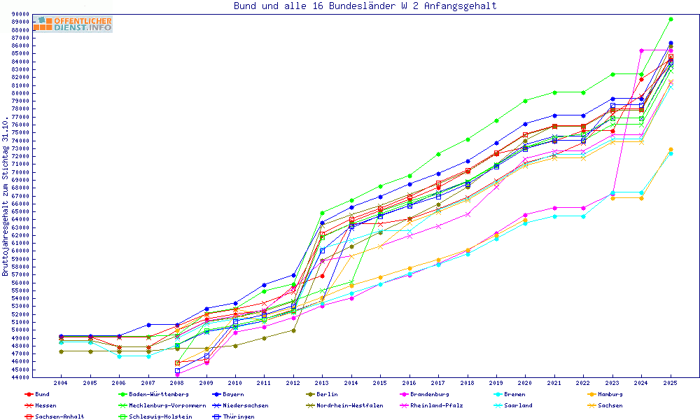 | Besoldungsvergleich W 2 im Jahr 2025 | Anfangsgehalt | ||||||