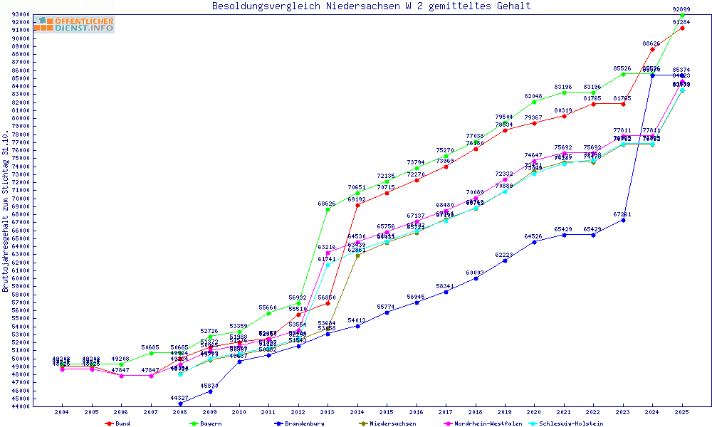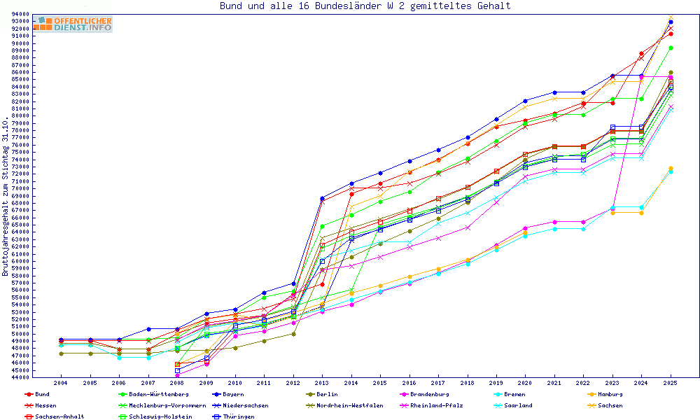 | Besoldungsvergleich W 2 im Jahr 2025 | gemitteltes Gehalt | ||||||