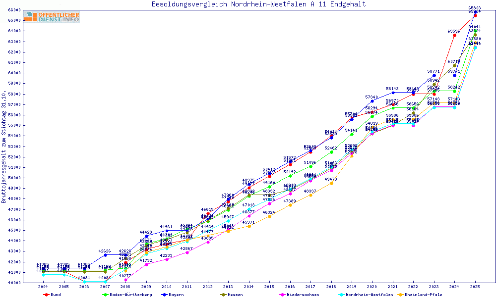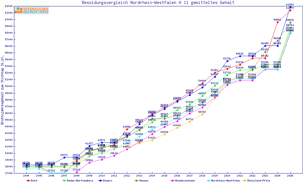 | Besoldungsvergleich A 11 im Jahr 2025 | gemitteltes Gehalt | ||||||